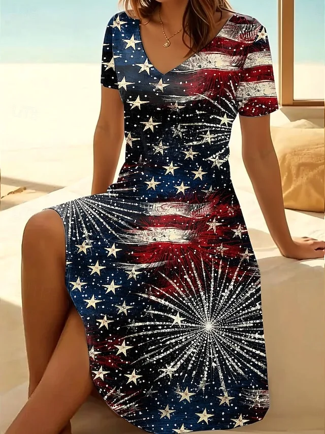Stylisches Mini Kleid mit Grafik-Print, V-Ausschnitt und lockerem Komfort. Perfekt für Sommer, Strand und Urlaub – jetzt entdecken.