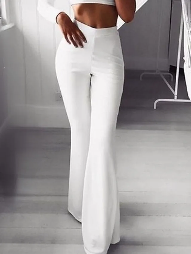 Stylische, dehnbare Schlaghose mit mittlerer Taille und weitem Bein. Jetzt entdecken und lässigen Komfort elegant tragen.
