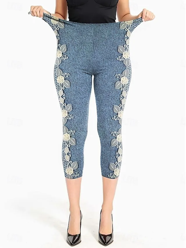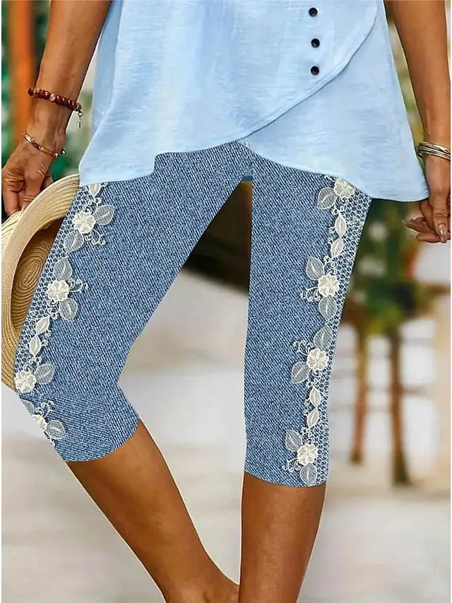 Stilvolle Capri-Leggings mit Blumen- und Grafikdruck, mittlerer Taille und bequemer Passform. Jetzt entdecken!