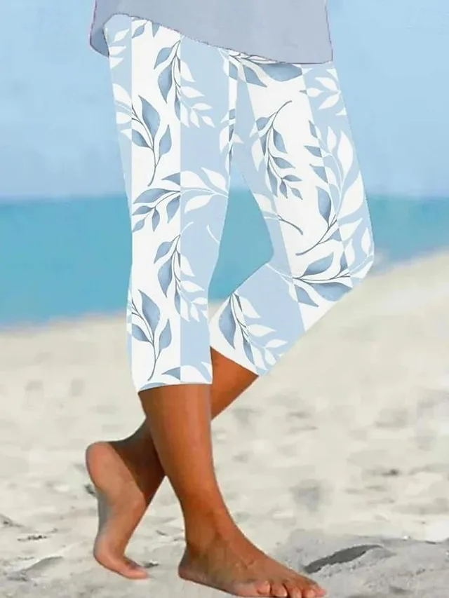 Stylische Capri-Leggings mit hoher Taille, dehnbarem Komfort und floralem Grafikmuster. Perfekt für Büro, Urlaub und Alltag.