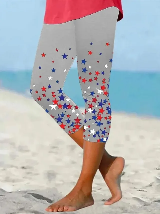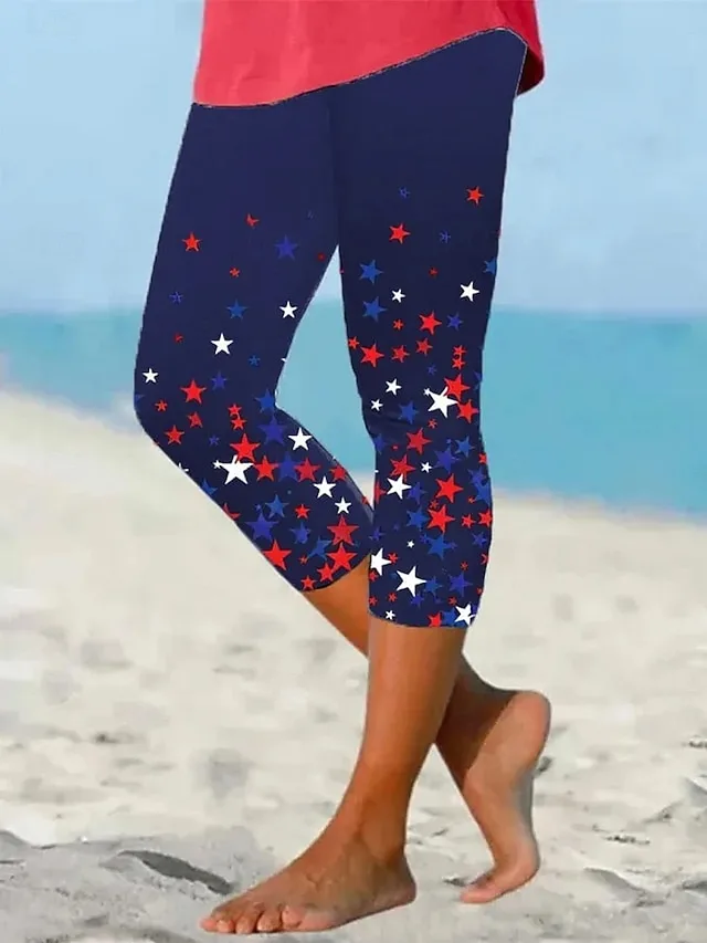 Stilvolle, weiche und dehnbare Leggings mit Flaggenprint und hoher Taille. Jetzt entdecken und elegant kombinieren.