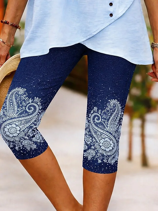 Stilvolle Caprihose mit hoher Taille, floralem Print und dehnbarem Komfort. Perfekt für Alltag, Urlaub und warme Tage.