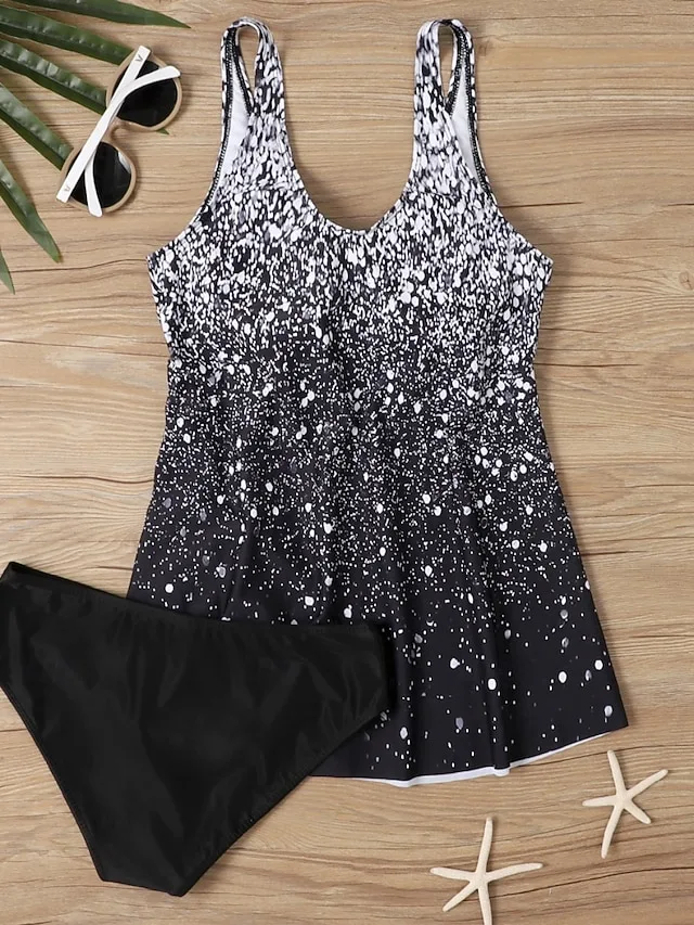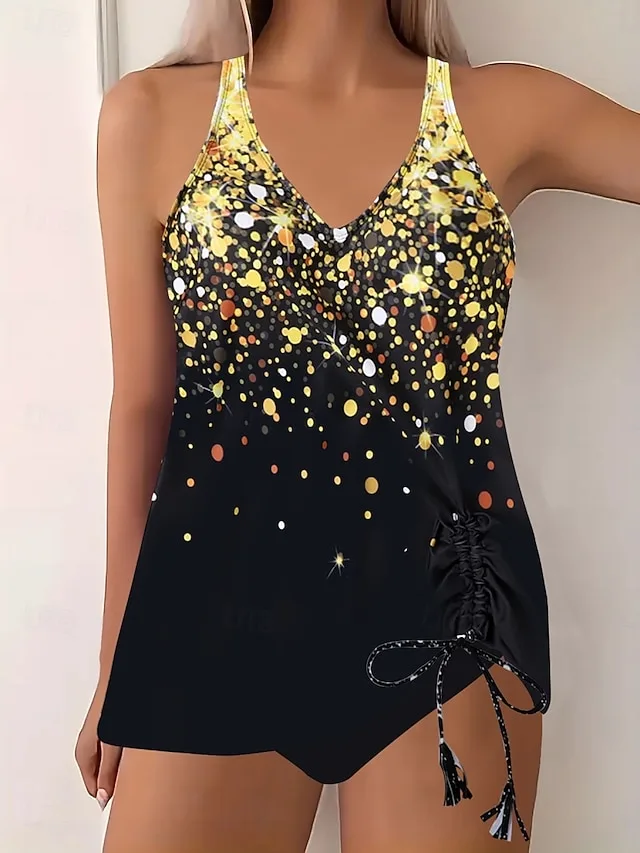 Eleganter zweiteiliger Tankini mit Bauchkontrolle, Ombre-Print und V-Ausschnitt. Perfekt für Strand, Pool und Urlaub.