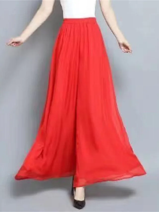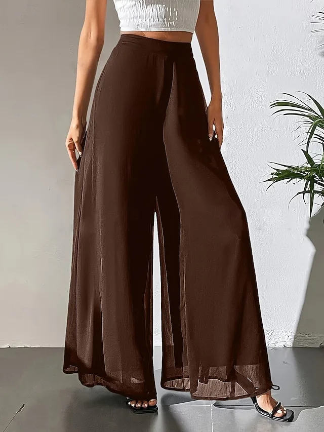 Leichte Chiffon-Hose mit weitem Bein, hoher Taille und elastischem Bund. Jetzt stilvoll und bequem entdecken.