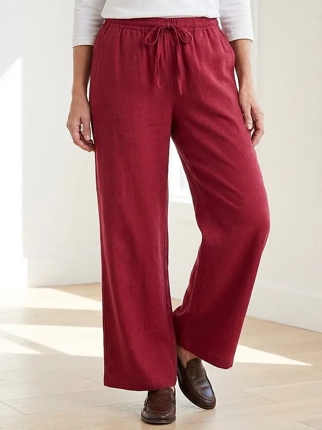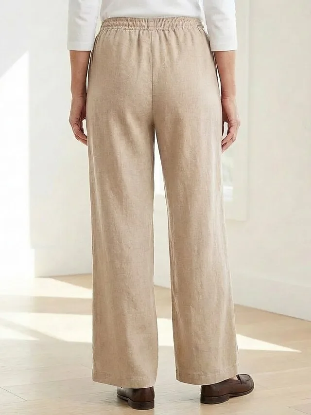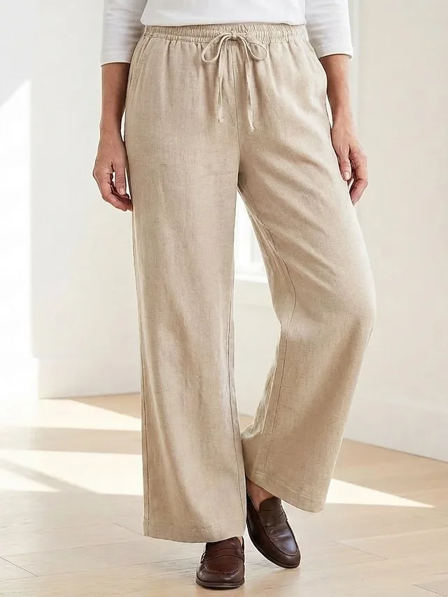Lässige Leinenhose mit weitem Bein, Kordelzug und Taschen. Komfortabel, vielseitig und ideal für Alltag, Urlaub und Streetwear.