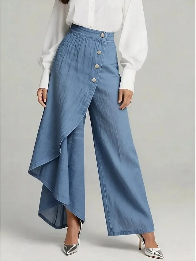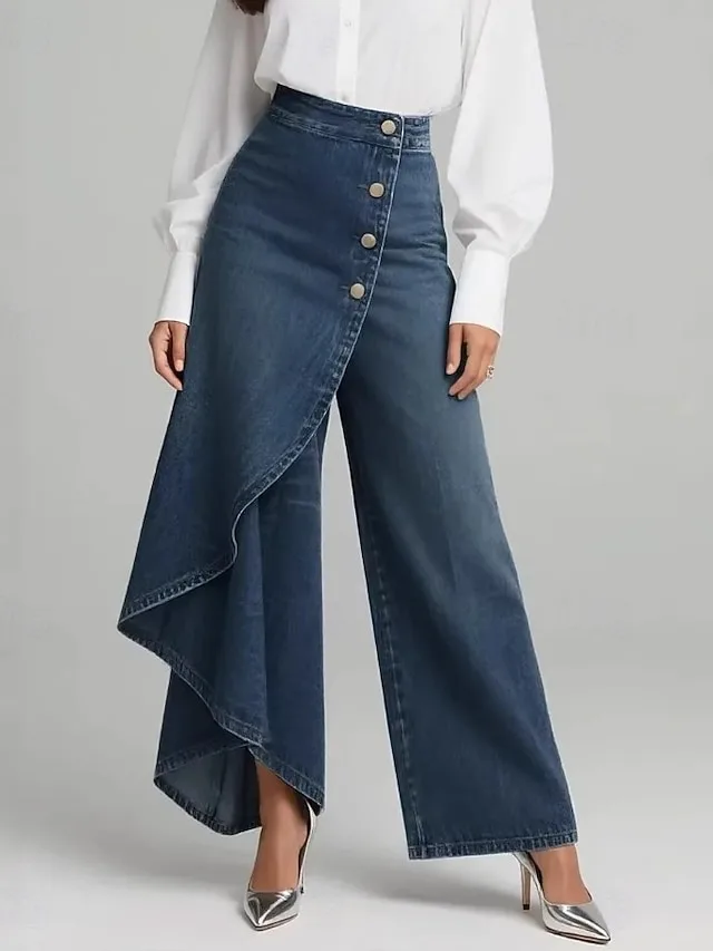 Lässige Jeanshose mit weitem Bein, mittlerer Taille und voller Länge. Perfekt für entspannte Looks im Frühling – jetzt entdecken.