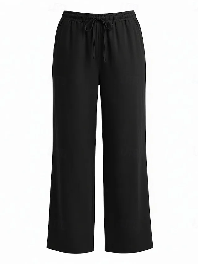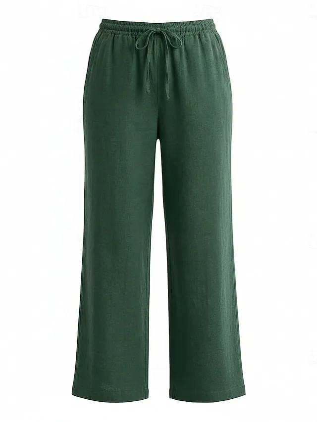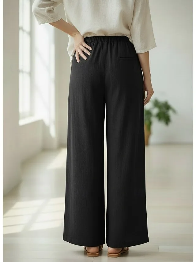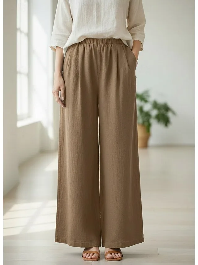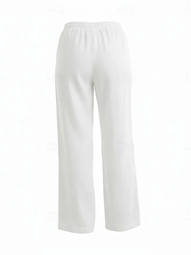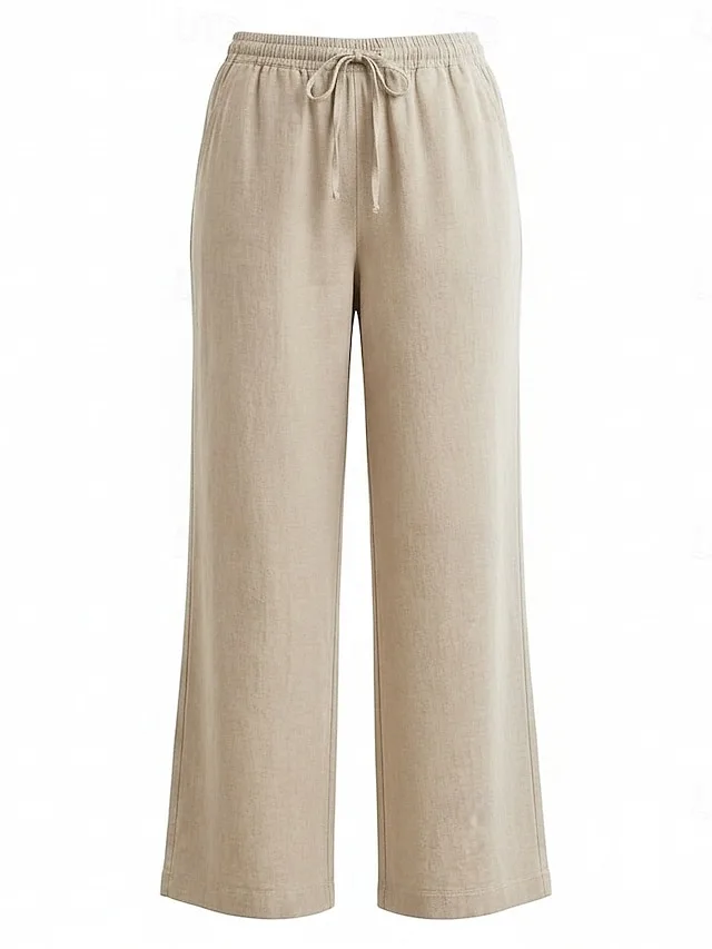 Lässige Leinenhose mit weitem Bein, elastischem Bund und Taschen. Bequem, vielseitig und ideal für stilvolle Casual-Looks.