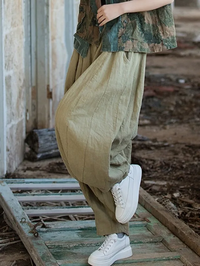 Leichte Damen-Leinenhose mit lockerer Passform, mittelhohem Bund und Taschen. Perfekt für Alltag, Urlaub und entspannte Looks.