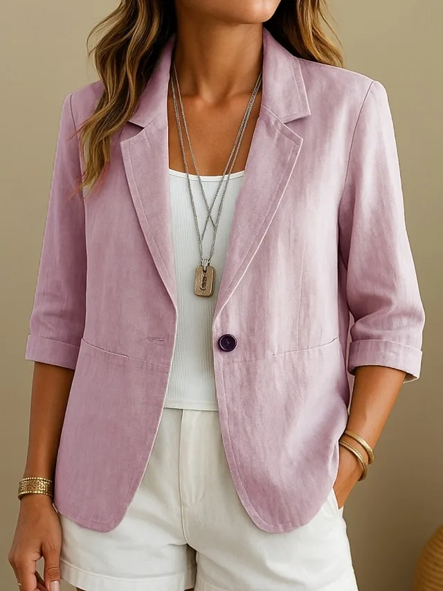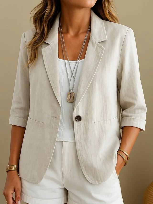 Eleganter Baumwoll-Leinen Blazer mit Taschen und bequemer Passform. Perfekt für Büro und Alltag – jetzt entdecken.