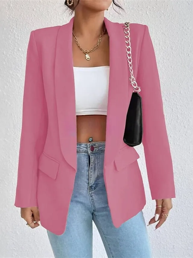 Moderner Blazer mit bequemer Passform, Taschen und offener Vorderseite. Perfekt für Büro, Alltag und City-Looks.