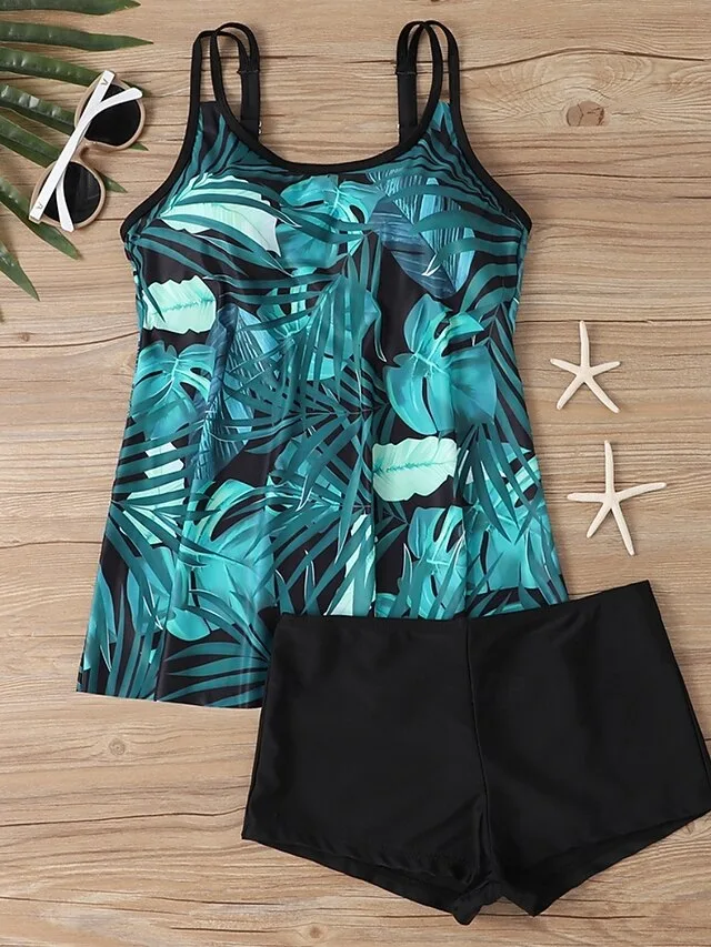 Stilvoller zweiteiliger Tankini mit Bauchkontrolle, U-Ausschnitt und Shorts – perfekt für Strand, Pool und Urlaub.