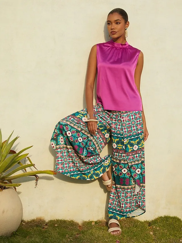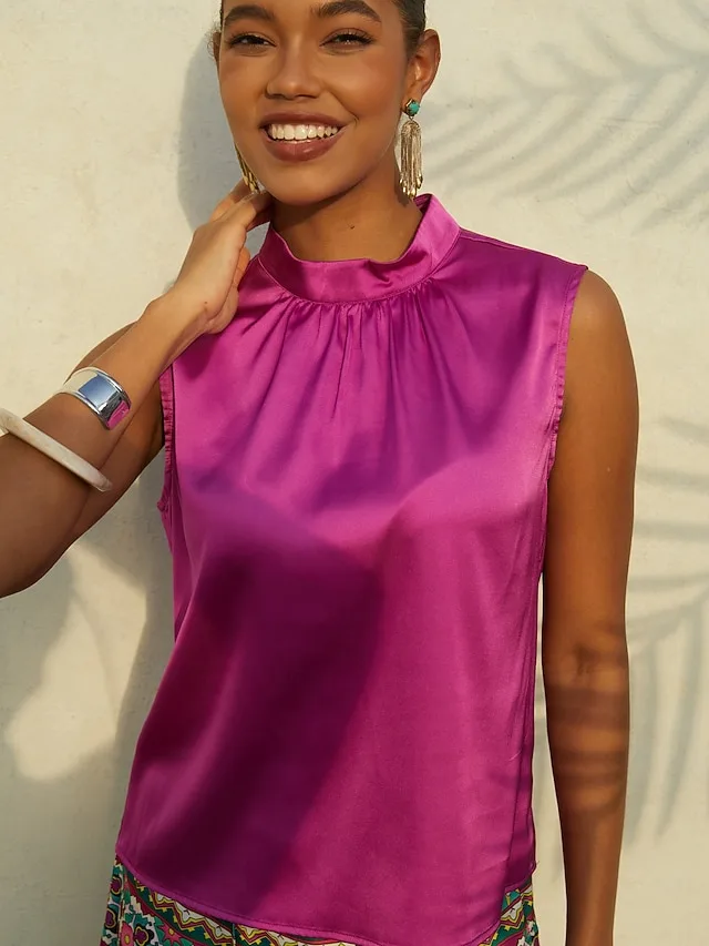 Elegantes Satin-Top mit Stehkragen und lockerer Passform. Perfekt für Alltag, Urlaub und stilvolle Sommerlooks. Jetzt entdecken.