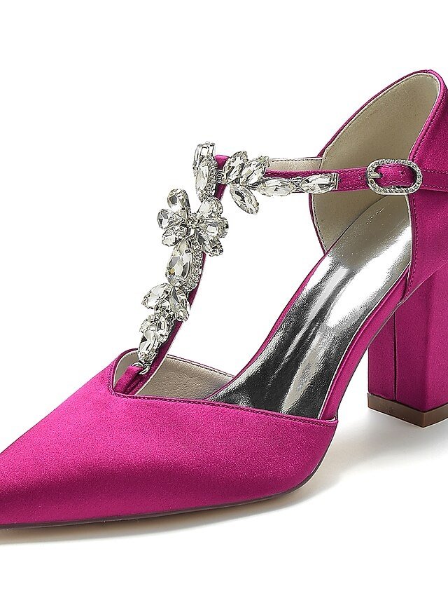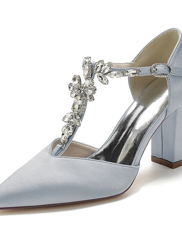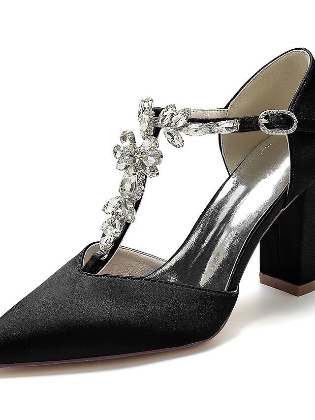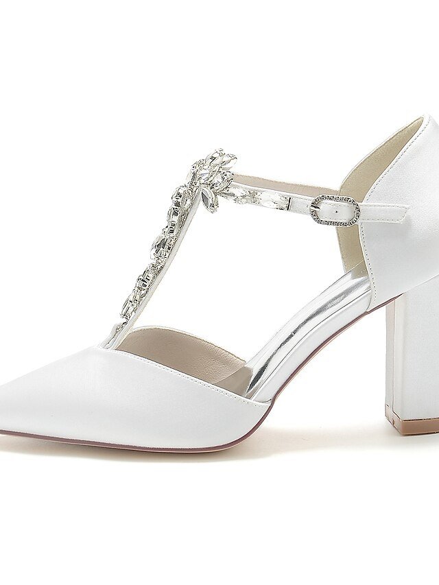 Discover our elegant Luxurious Satin Bridal Shoes, featuring rhinestones and a sleek t-strap. Perfect for your special day.