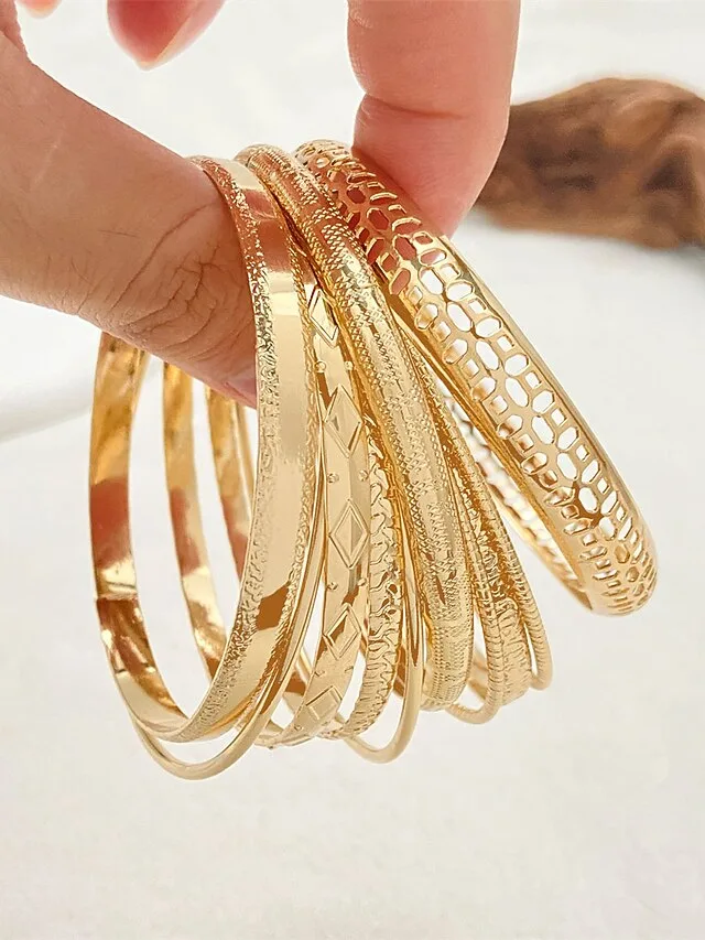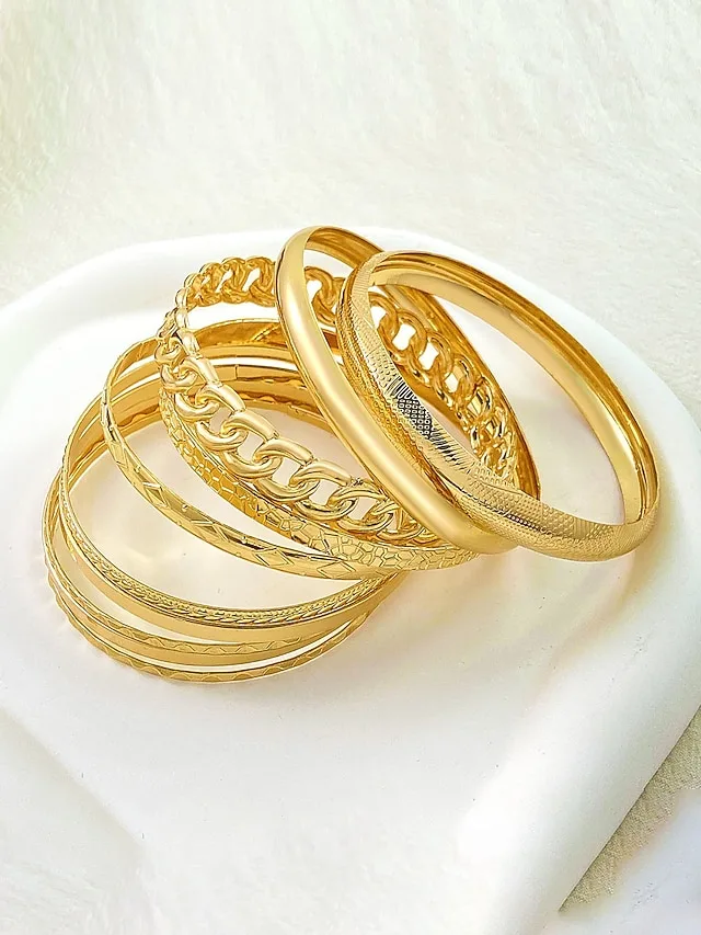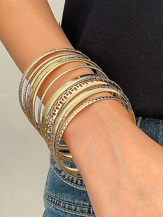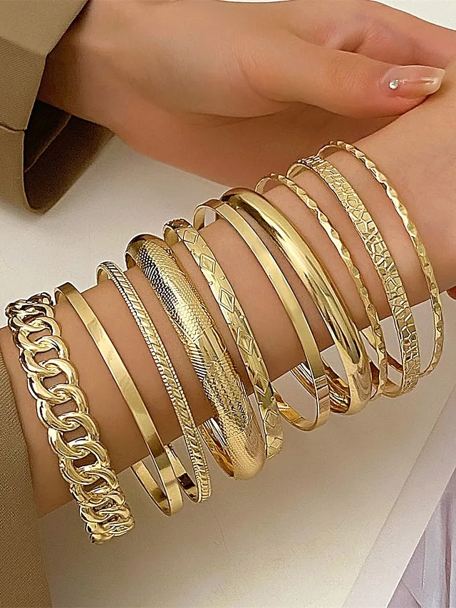 Setzen Sie ein stilvolles Statement mit diesem goldfarbenen Armreif in moderner Geometrie. Das zeitgenössische Design verleiht jedem Outfit eine elegante, mühelos trendbewusste Note.