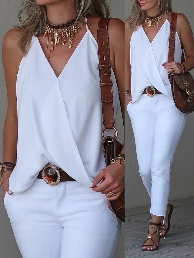 Discover elegance with our V Neck Sleeveless Camisole Tank Top. Available in classic hues, perfect for any occasion. Shop now for timeless style.