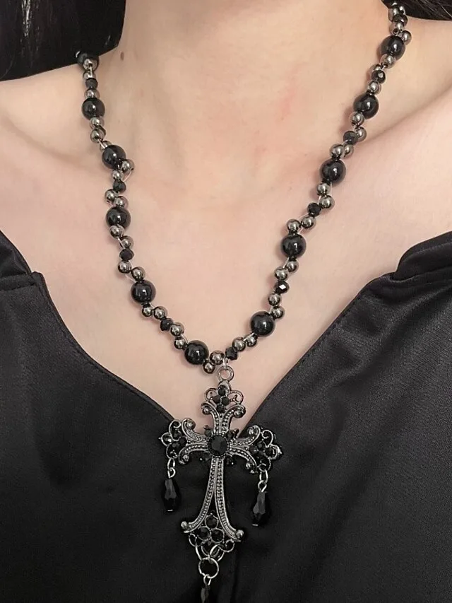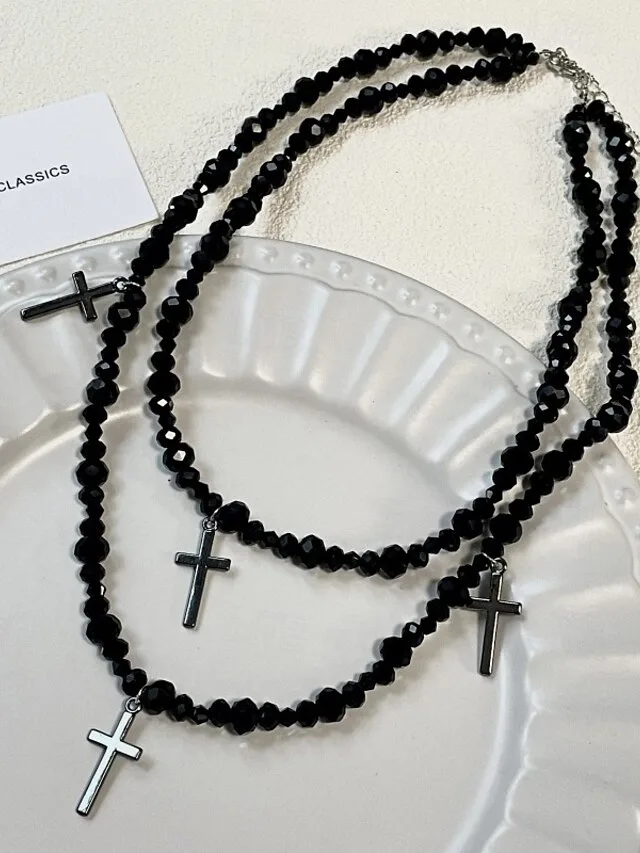 Setze ein ausdrucksstarkes Statement mit einer Halskette, die dunkle Eleganz und moderne Geometrie harmonisch verbindet. Das markante Design verleiht jedem Look eine selbstbewusste, urbane Note und wirkt dabei dennoch stilvoll und edel.
