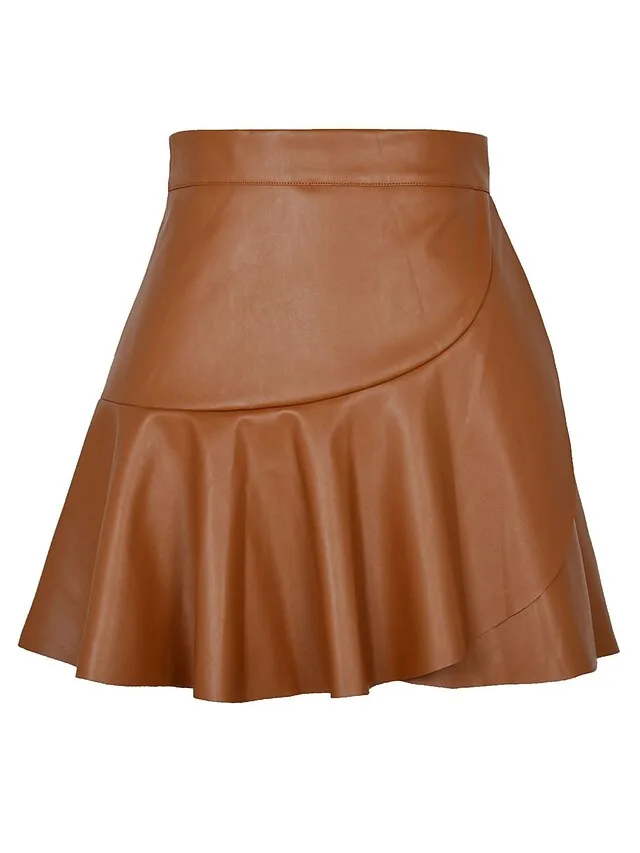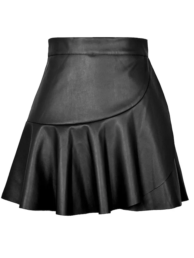 Moderner Minirock mit hoher Taille und Rüsche in edler Kunstleder-Optik. Jetzt stilvoll shoppen und Looks aufwerten.