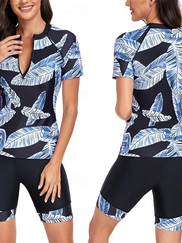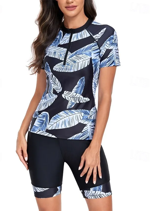 Setzen Sie auf einen modernen Look, der am Strand ebenso überzeugt wie beim Wassersport. Dieses tropisch bedruckte Zweiteiler-Design verbindet sportliche Funktion mit einer eleganten, dynamischen Ausstrahlung.