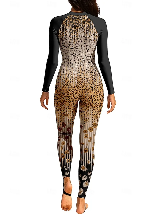 Sportlich Regulär Farbverlauf V-Ausschnitt Langarm Ganzkörper-Bademode