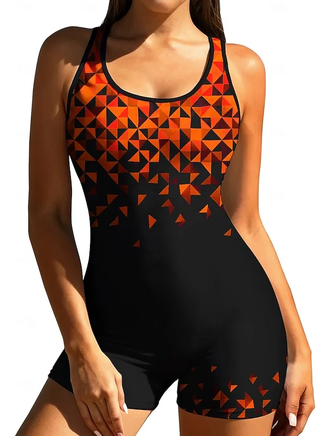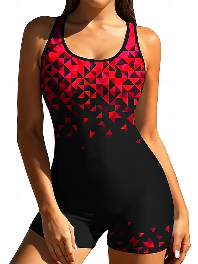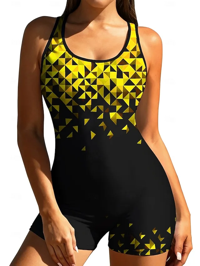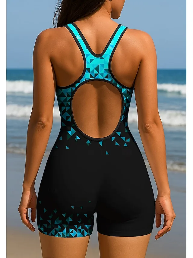 Ein eleganter Einteiler für aktive Tage am Wasser, der sportliche Funktion mit einer modernen, femininen Ausstrahlung verbindet. Das geometrische Farbblock-Design sorgt für einen markanten Look, während die elastische Verarbeitung angenehmen Tragekomfort und Bewegungsfreiheit bietet.