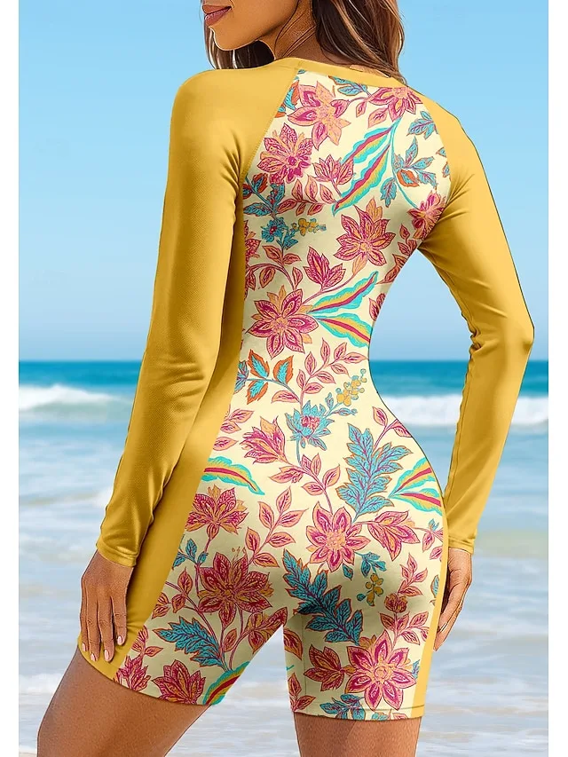 Leichter Damen Badeanzug mit UPF50+, floralem Design und Reißverschluss. Jetzt stilvoll geschützt ins Wasser starten.