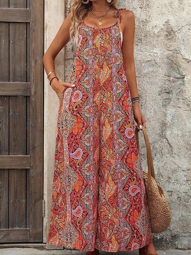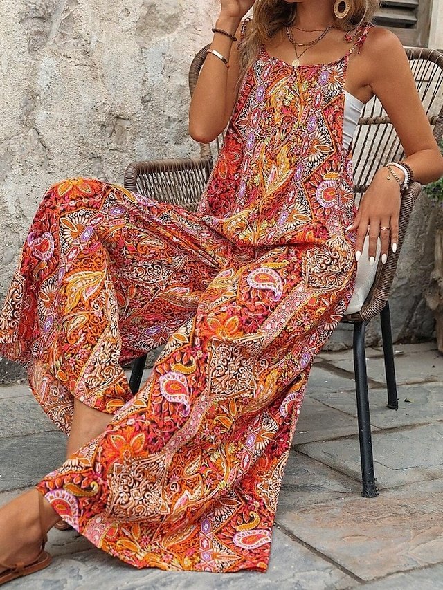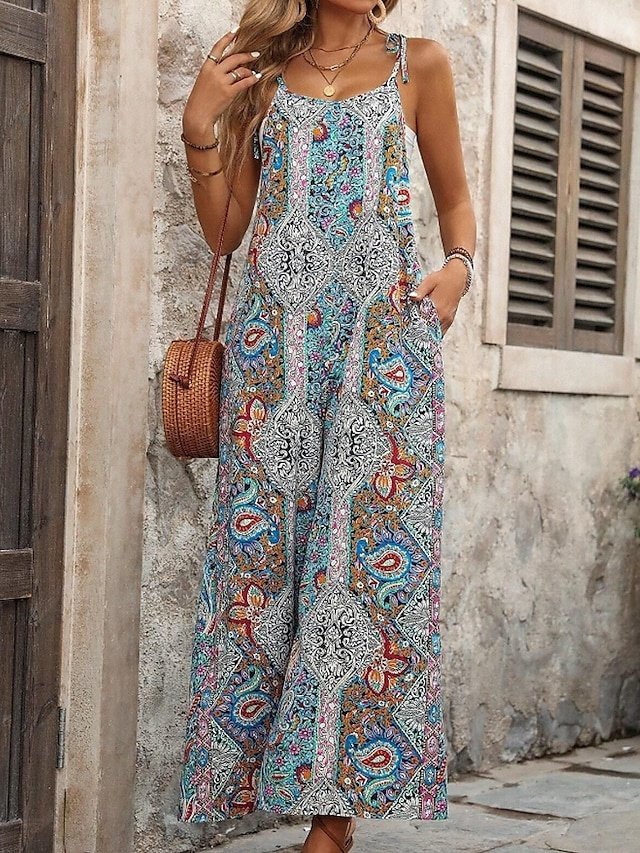Streetwear Regular Fit Floral U Neck Sleeveless Jumpsuit