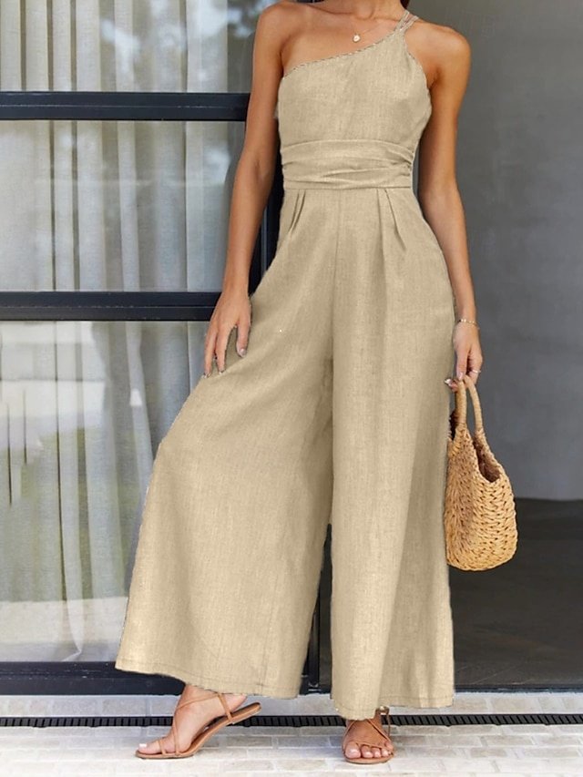 Discover modern elegance with our streetwear one shoulder sleeveless jumpsuit. Perfect for any occasion with a chic and bold design.