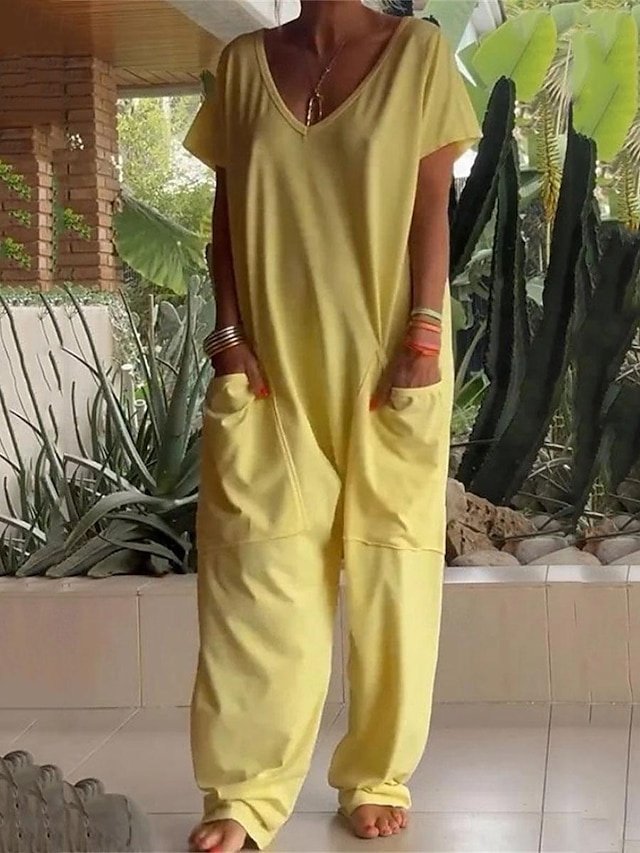 Discover the elegance of our Streetwear Solid V Neck Jumpsuit. Available in White, Yellow, Fuchsia. Effortlessly chic for everyday glamour.