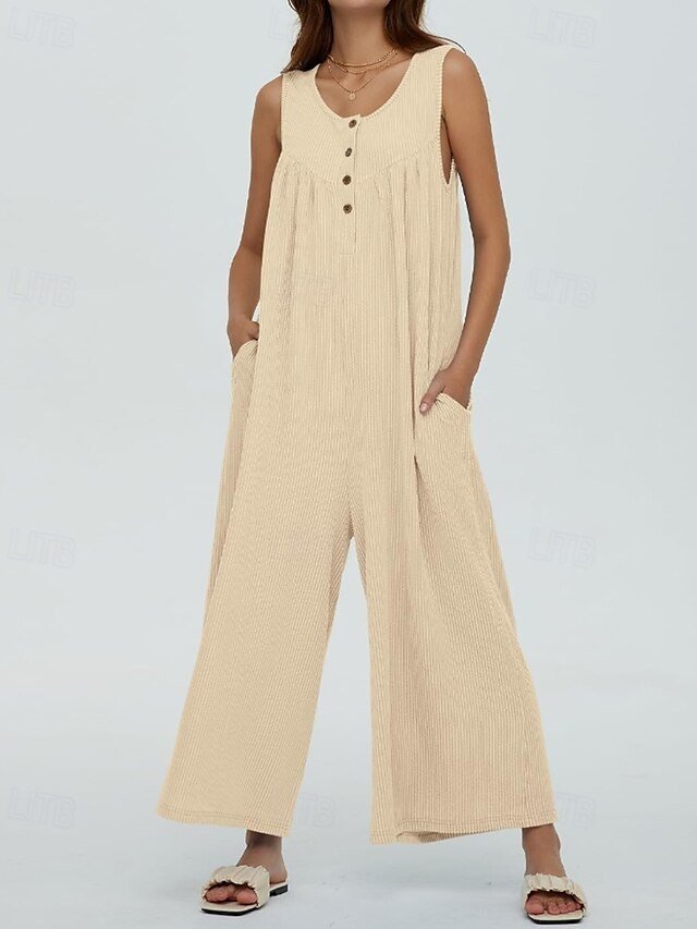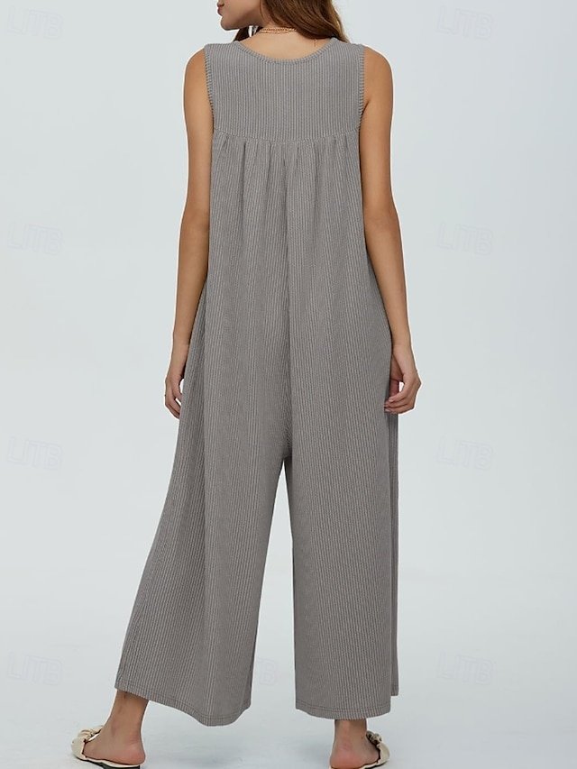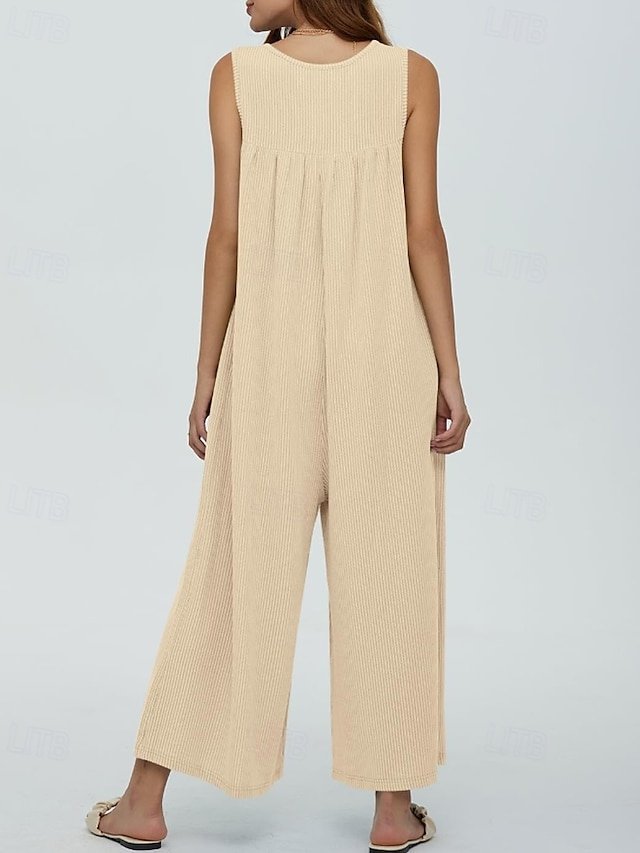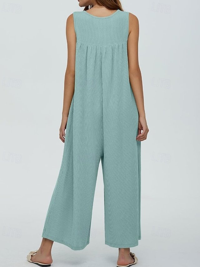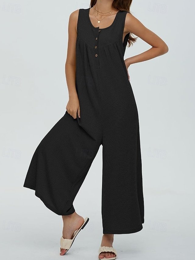 Discover ultimate elegance in our Streetwear Solid Sleeveless Jumpsuit, with U Neck design. Available in Black, Navy, and Blue for casual sophistication.