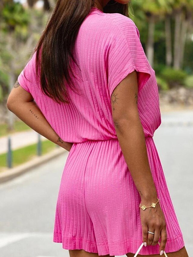 Discover effortless elegance with our Streetwear Regular Solid V Neck Short Sleeve Romper. Perfectly designed for the modern woman who values both style and comfort, this romper is your ticket to chic summer sophistication. Whether you’re stepping out for a casual day in the city or an evening gathering, its versatile design makes it a standout piece in any wardrobe.