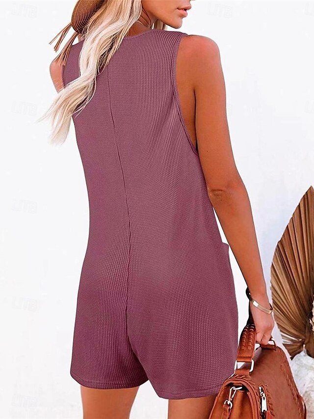 Discover our Streetwear Solid V Neck Sleeveless Jumpsuit, perfect for trendy summer outings. Available in Black, Pink, and Wine. Shop now for effortless style.