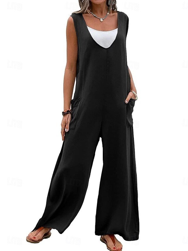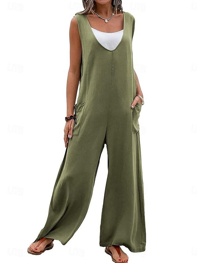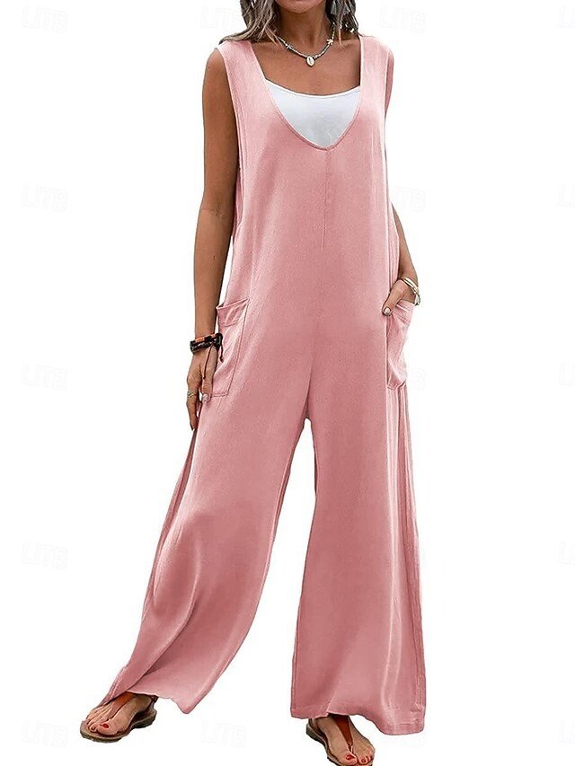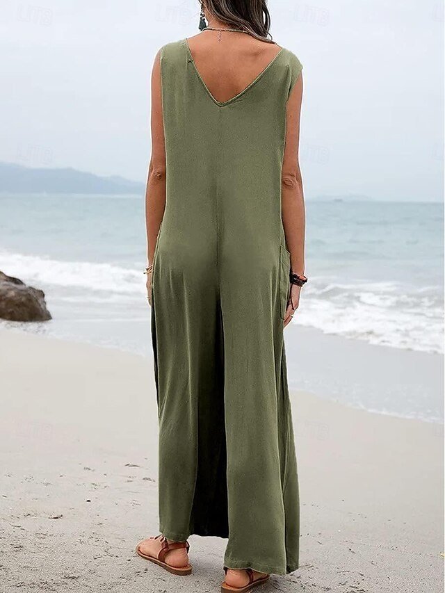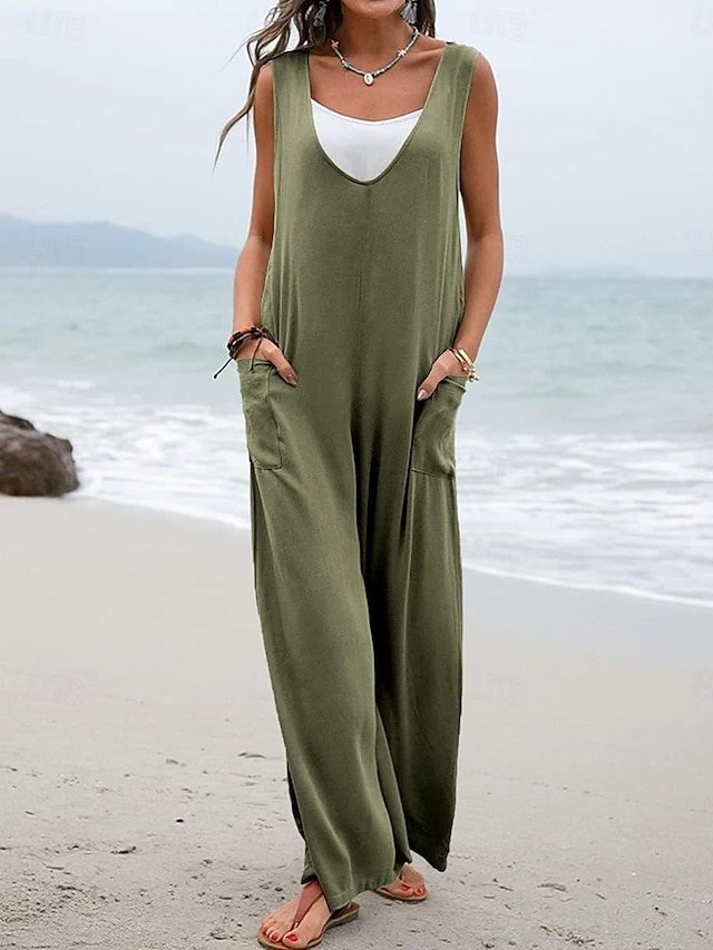 Discover our elegant Streetwear Solid V Neck Overall, perfect for effortless summer style. Available in Black, Pink, and Green.