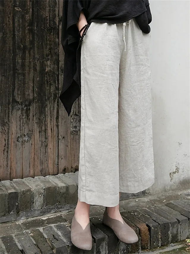 Stilvolle Damen-Chinos mit weitem Bein, Kordelzug und Taschen. Bequem, vielseitig und perfekt für Alltag, Urlaub und Streetwear-Looks.