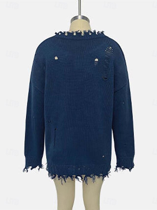 Discover the elegance of our Casual Solid Knit Top with a crew neck and drop shoulders, perfect for fall and winter in Navy Blue and Beige.