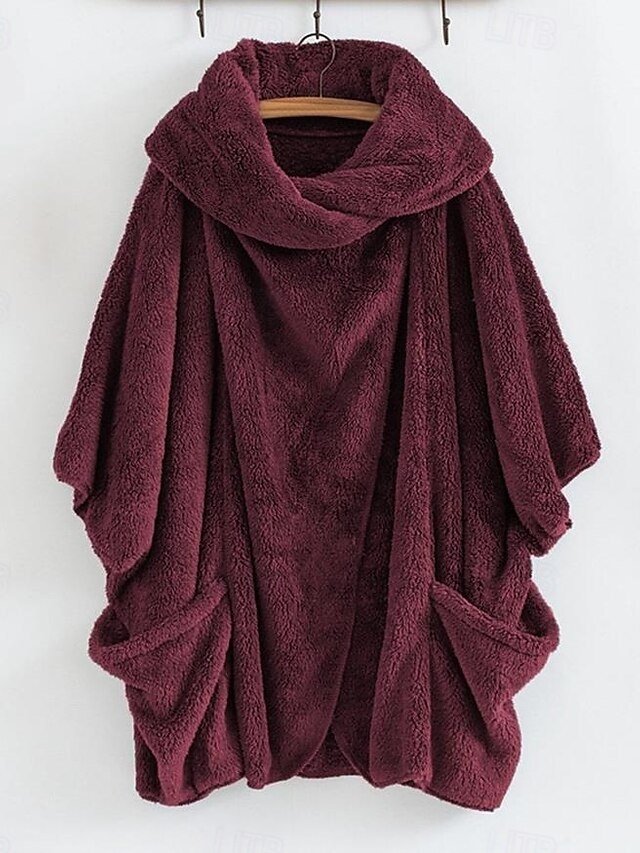 Discover elegance with our Stylish Loose Solid Long Sleeve Irregular Hem Coat in Black, Red or Brown. Ideal for chic winter outings.