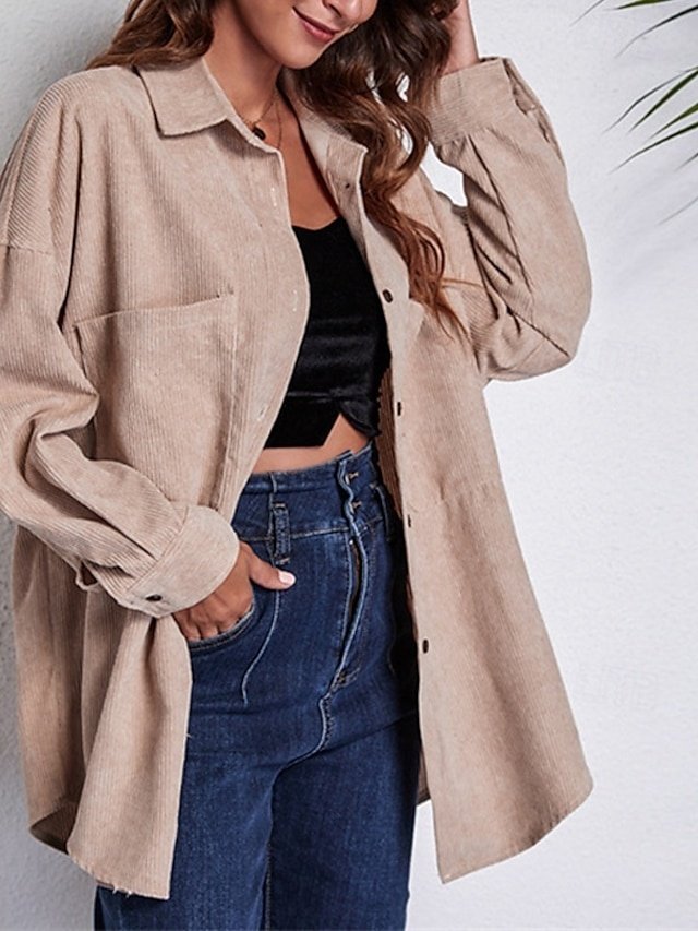 Stylish Regular Plain Shirt Collar Long Sleeve Tops