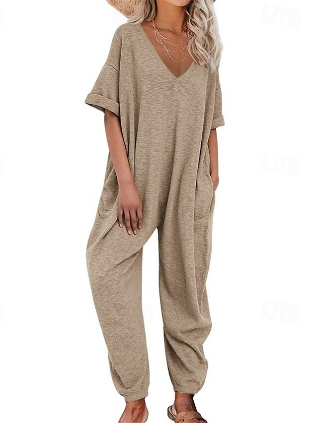 Stylish Regular Solid V Neck Half Sleeve Harem Jumpsuit