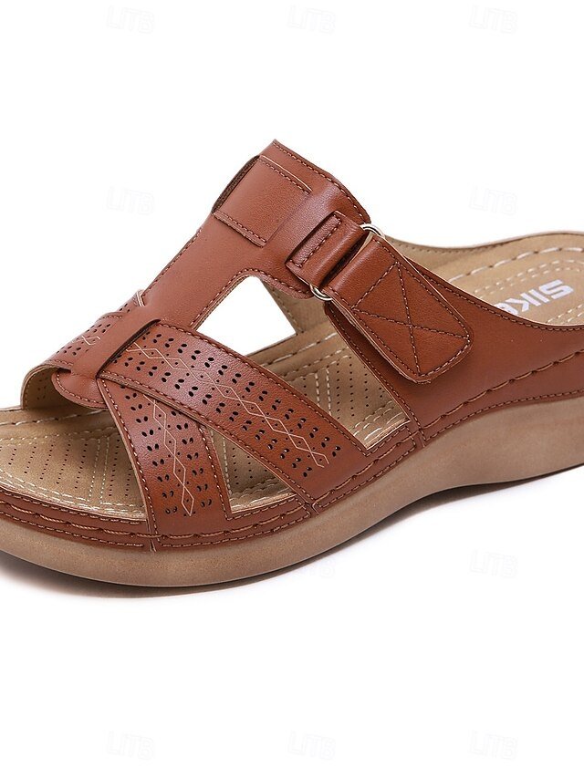Discover elegant black slip-on sandals with a chic cut-out design. Perfect for summer outings, offering style and unparalleled comfort.