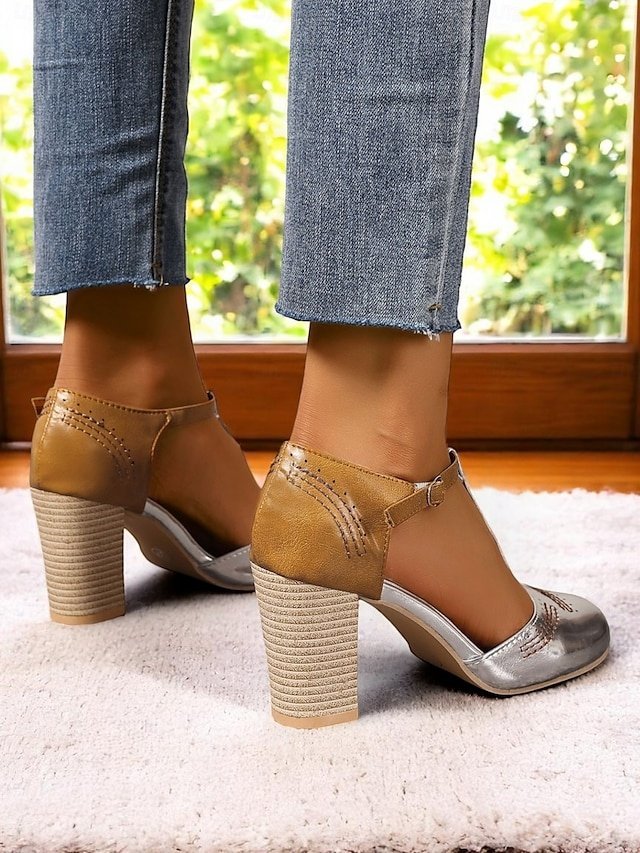 Indulge in the elegance of yesteryears while stepping into the future with our exquisite two-tone T-strap heeled shoes. Perfectly blending vintage charm with contemporary flair, these shoes are your ideal companions for both leisurely strolls and chic soirées.