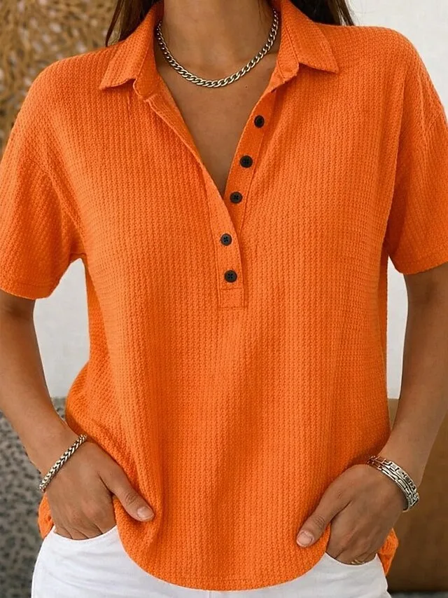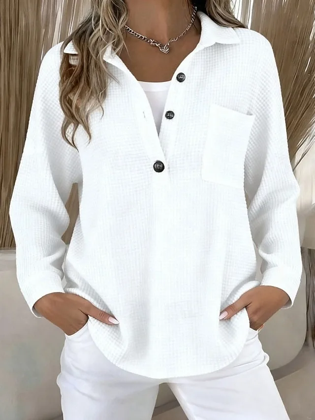 Stilvolle Vintage-Tunika mit Knöpfen und Umlegekragen. Perfekt für Alltag, Frühling und Sommer – jetzt entdecken.