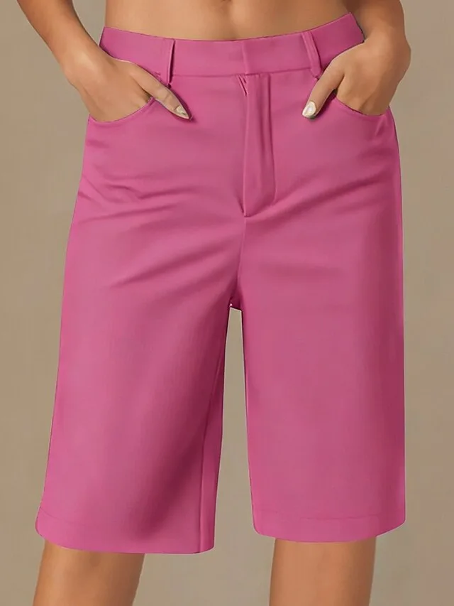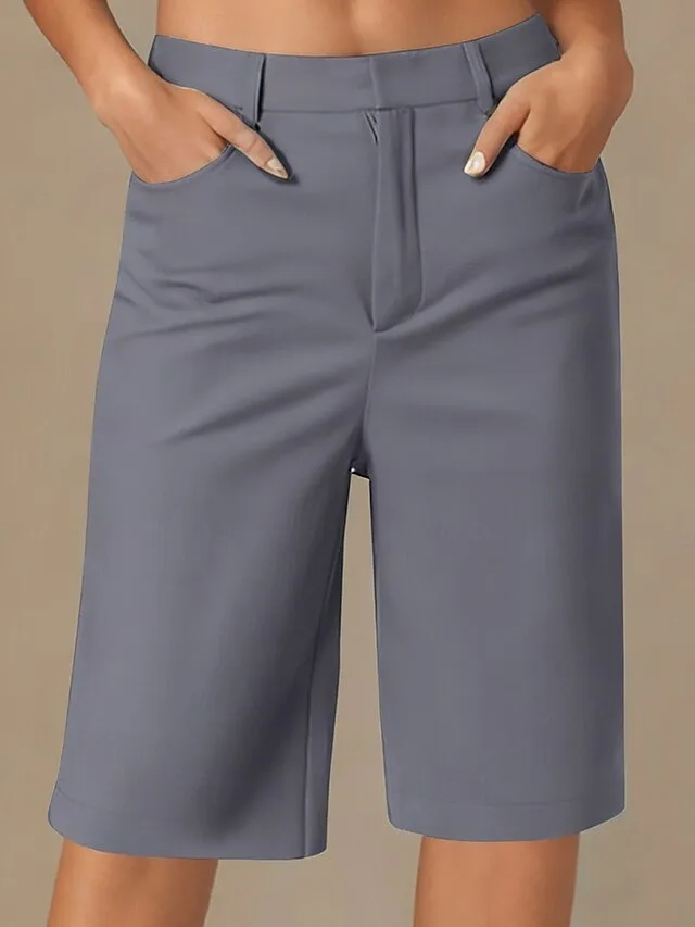 Vintage Loose Einfarbig Tiefer Bund Knielang Shorts