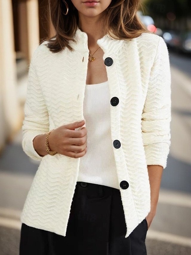 Step into the world of timeless elegance with our Vintage Loose Pure Colour Stand Collar Long Sleeve Cardigan. This exquisite piece effortlessly combines classic style with modern comfort, making it an essential addition to your wardrobe, whether you’re lounging at home or enjoying a casual day out.
