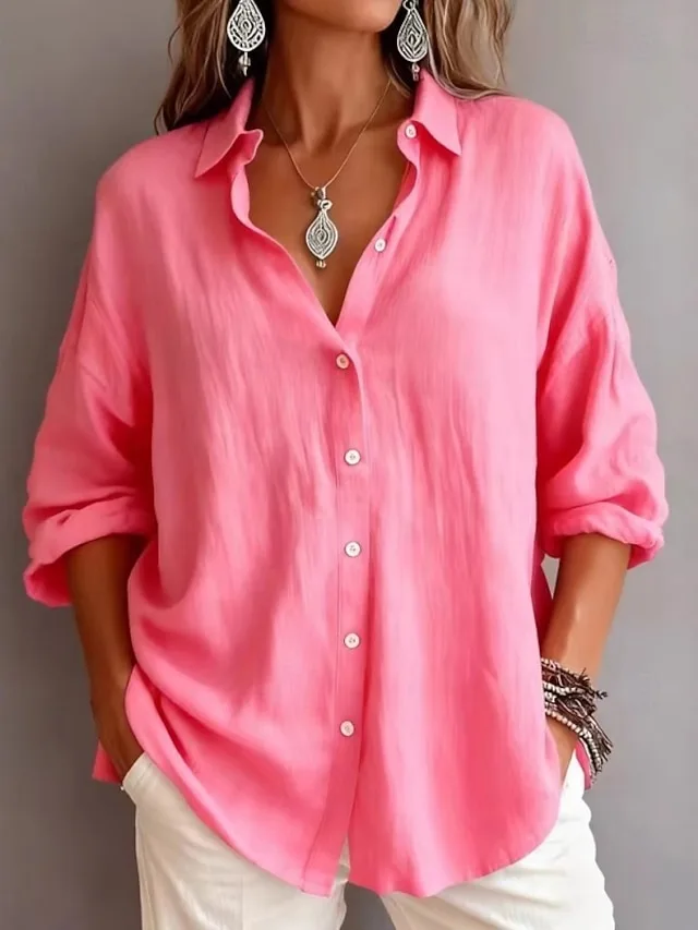Vintage Normale Einfarbig Hemdkragen Langarm Hemdbluse