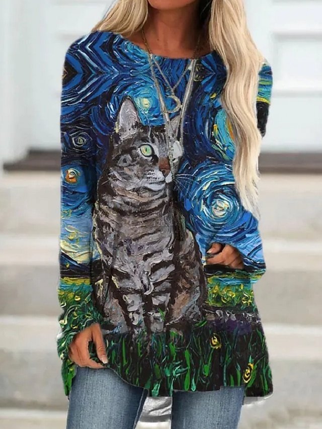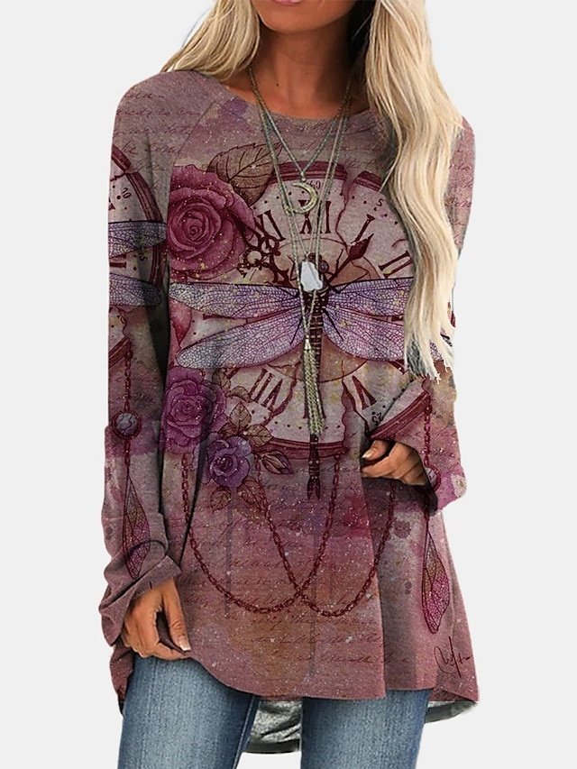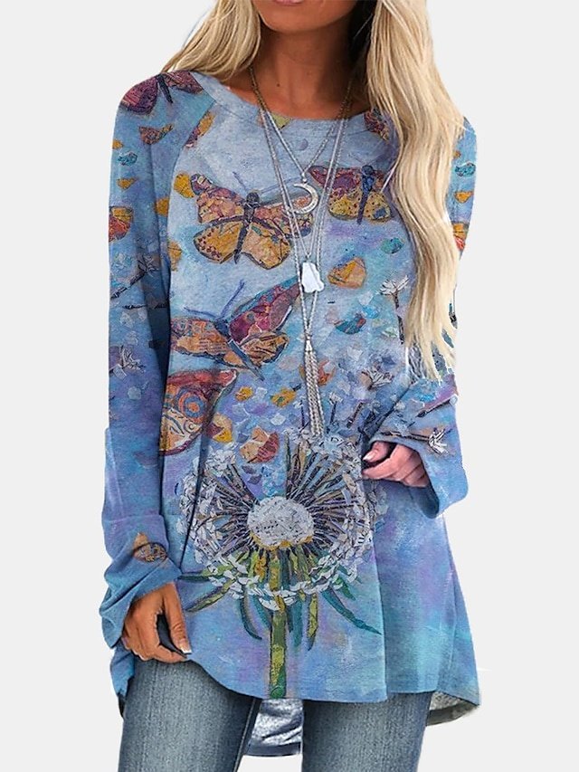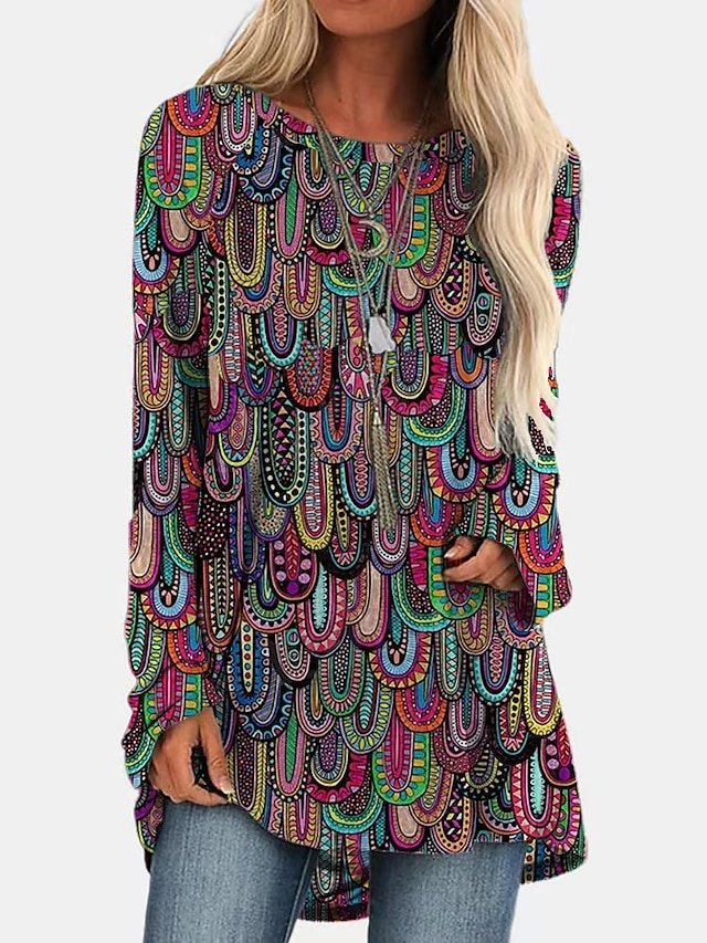 Discover our Vintage Plus Size Geometric Tunic Top with a round neck and long sleeves, perfect for adding boho flair to your autumn wardrobe.