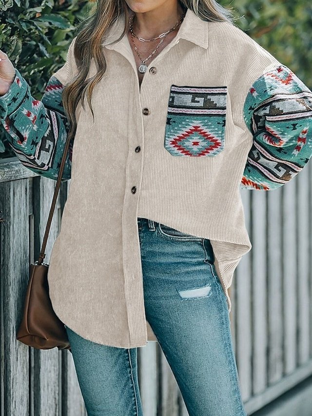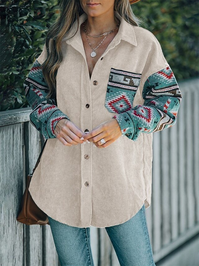 Step into a realm of timeless elegance and warmth with our Vintage Regular Fit Geometric Long Sleeve Ethnic Jacket. This stunning piece encapsulates the essence of sophisticated outdoor wear, making it an essential addition to your autumn and winter wardrobe.