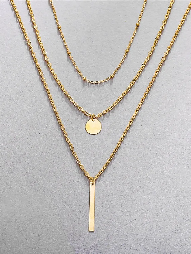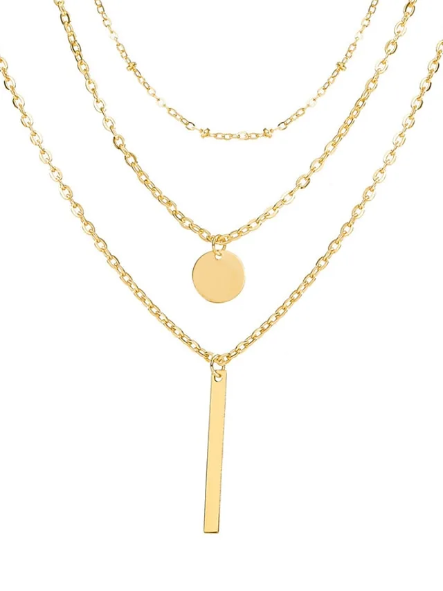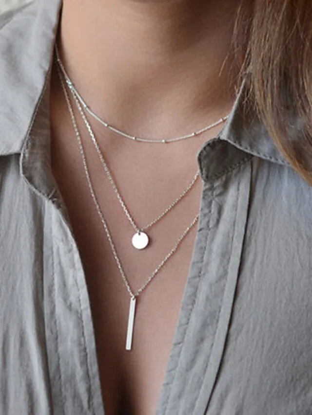 Setzen Sie ein stilvolles Statement mit einer Halskette, die moderne Geometrie und zeitlose Vintage-Eleganz harmonisch verbindet. Das mehrlagige Design verleiht Ihrem Look eine raffinierte Tiefe und macht das Schmuckstück zu einem vielseitigen Begleiter für jeden Tag.