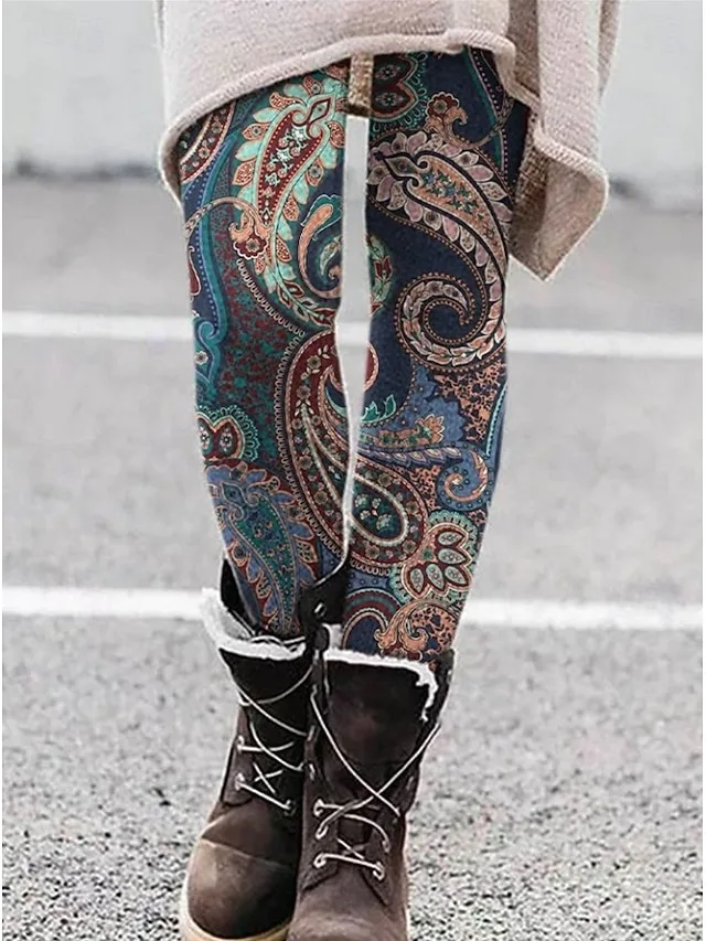 Stilvolle Vintage-Leggings mit hohem Bund, Grafikmuster und dehnbarem Komfort. Perfekt für Alltag, Urlaub und Outdoor-Looks.