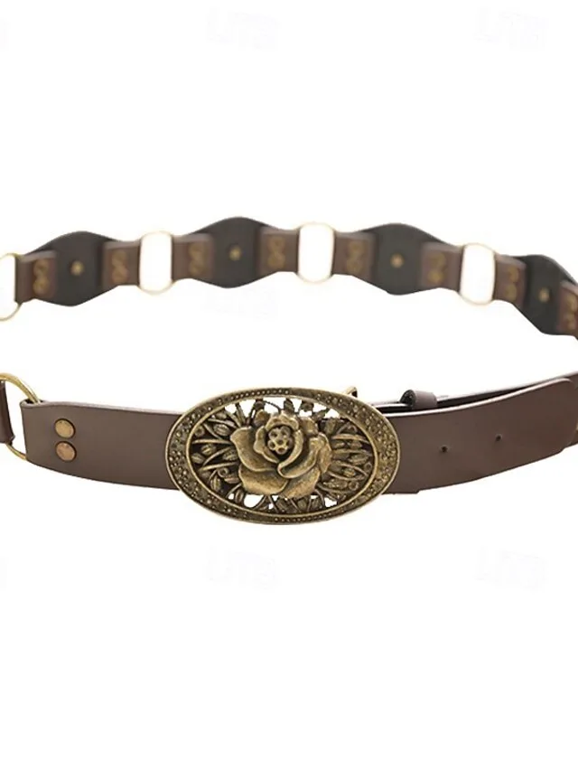 Verleihen Sie Ihrem Look eine elegante Vintage-Note mit diesem stilvollen Taillengürtel in warmem Kaffee-Ton. Das florale Muster und die markante Form setzen ein geschmackvolles Statement und ergänzen sowohl lässige als auch besondere Outfits mit müheloser Raffinesse.