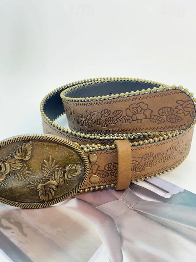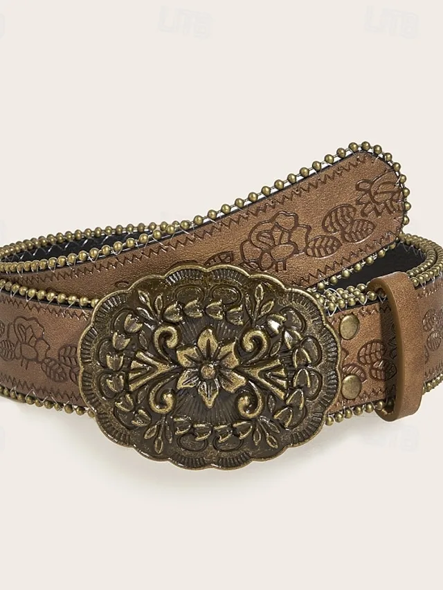 Eleganter Vintage-Taillengürtel mit Blumenmuster aus PU. Perfekt für Street- und Ferien-Looks. Jetzt stilvoll kombinieren.